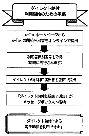 @ e-Taxの利用開始のための手続が必要となるほか、ダイレクト納付利用届出書を所轄の税務署に書面で提出する必要があります。