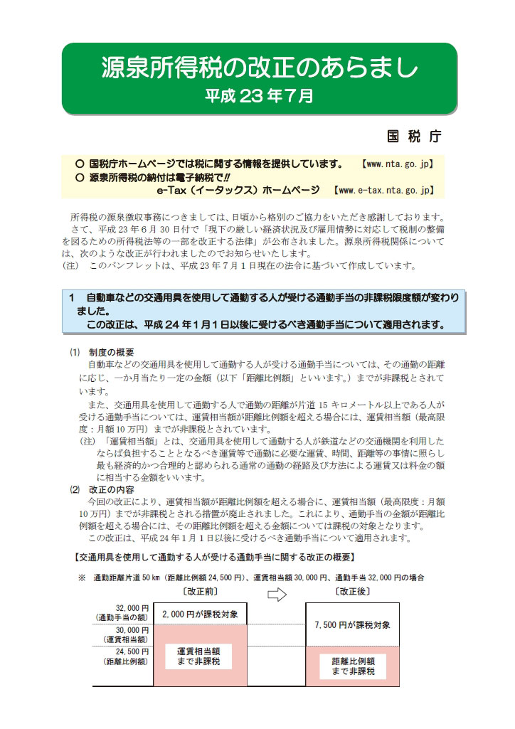 ◎今回は、「源泉所得税の改正のあらまし(平成23年7月)国税庁」より抜粋し、掲載しました。