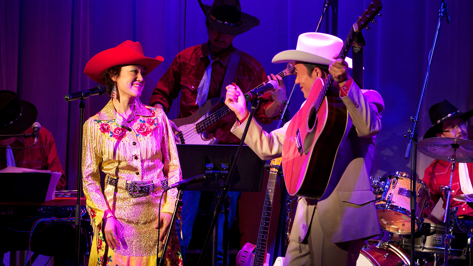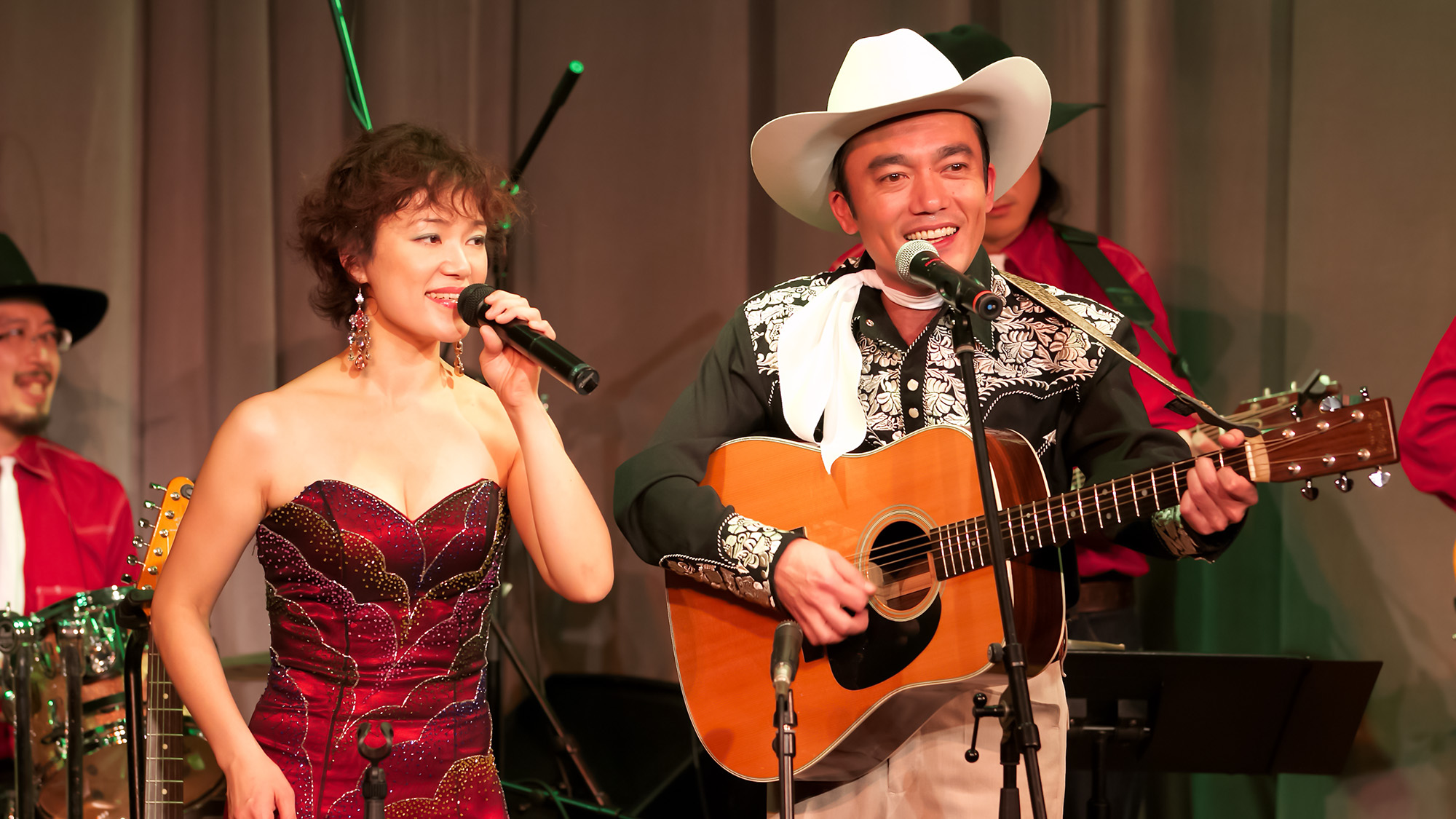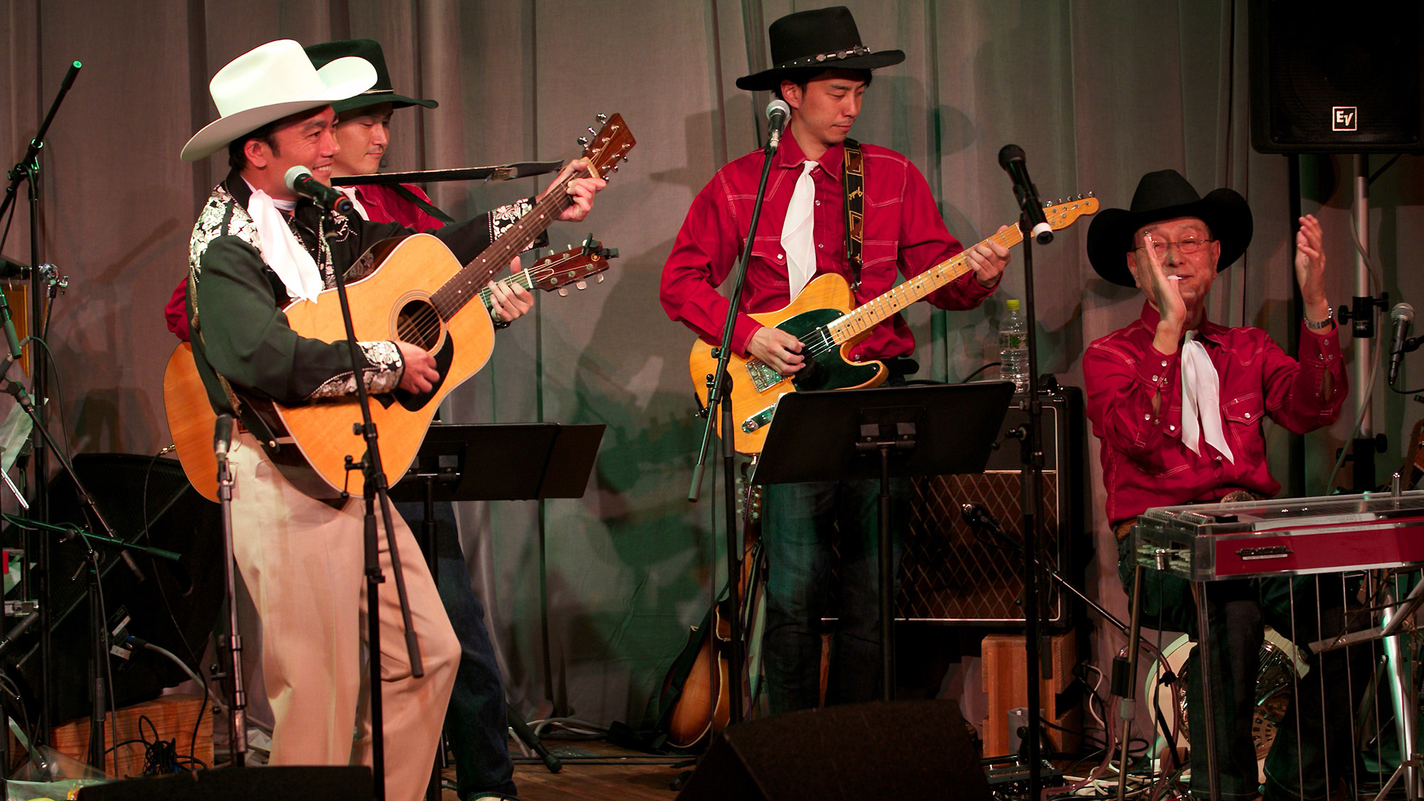NHK朝ドラの記憶も新しい「ブギウギ」は1920年代にアメリカで生まれたブギウギという音楽のスタイルが日本に持ち込まれた音楽として戦後広まりました。カントリー・ミュージックも、1920年にアメリカで欧州からの移民によって受け継がれた音楽がアメリカで根付いてカントリー・ミュージックとなりました。日本では戦後、進駐軍によってもたらされ米軍基地などでそのサウンドが広まりました。シティライツの石田新太郎は芸歴60年であり、今ではカントリー・ミュージック界のレジェンドの一人として現役で活動している数少ない一人です。そしてその娘の美也はカントリー・ミュージックを歌い、次の世代に日本のカントリーを残していきたいと考えています。2世の音楽家として活動する数少ない一人です。同じようにカントリーを愛し、音楽の場「マローネ」を経営する父を持つ高橋和也さんはロックを好きになりつつ、親の好きなカントリーを聞いた時にロックのルーツにカントリーがあることを発見します。そこからカントリー・ミュージックのレジェンドであるハンク・ウイリアムスに夢中になり現在に至ります。今回は、石田新太郎とシティライツ、そしてゲストに高橋和也とThe Driving Cowboysを迎え、二組のカントリーバンドによるサウンドをお届けします。高橋和也さんは9年ぶりのこのコンサートの出演です。