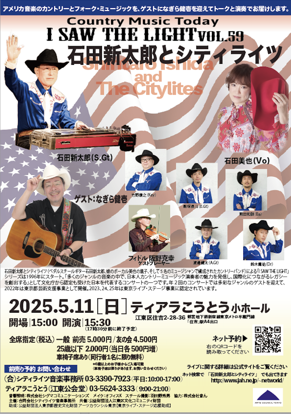 1920年に欧州からの移民がアメリカに渡り、受け継がれた音楽が根付いてカントリー・ミュージックが生まれました。日本では戦後、進駐軍によってもたらされ米軍基地などでそのサウンドが広まりました。シティライツの石田新太郎は芸歴60年であり、今ではカントリー・ミュージック界のレジェンドの一人として83歳の現在も現役で活動している数少ない一人です。そしてその娘の美也はカントリー・ミュージックを歌い、次の世代に日本のカントリーを残していきたいと考えています。